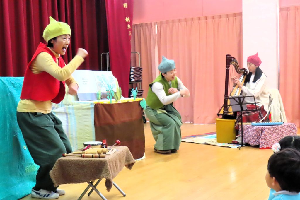 3月5日、はじめましての百草台幼稚園(日野市)にて、出張絵本シアターを上演しました。
